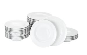Vi har 18 tallerkner med tilhørende bestik, som kan bookes samlet på dagsbasis.